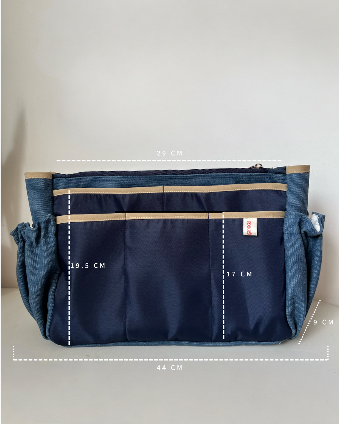 - ancho: 29cm (con cosas puede medir hasta 44cm)